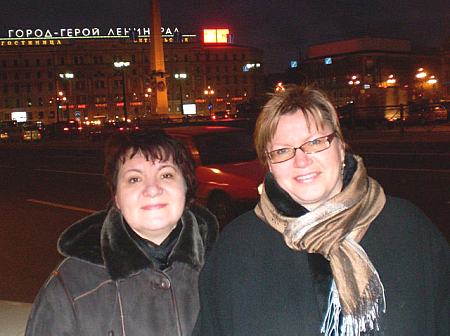 … На следующее утро… Так рано может проснуться только ЮГВшница, чтобы встретить ни свет ни заря прибывших ЮГВшников! Ирина Желяева и Светлана Гаврилюк у Московского вокзала в Питере.