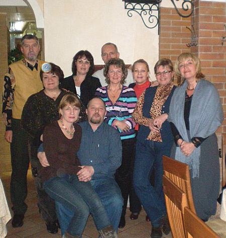 Света Полякова(81), Люда Литвиненко(80), Инесса Николаева(76), Ирина Желяева (76), Светлана Гаврилюк(78),)спиной к фотографучета Желтовых(79) (мы ещё их увидим в лицо!